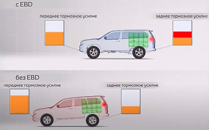 Кстати, прокаченной версией ABS является более современная версия EBD, которой современные авто премиум-уровня оснащаются комплексно. Этот ассистент строго индивидуально дозирует тормозное усилие на каждое колесо, что будет полезно при движении на неоднородном покрытии, например обледенелой трассе. Кроме того, EBD учитывает, насколько загружен автомобиль, что полезно, если вы заполнили его под завязку водой, продуктами и топливом, поживившись остатками из разграбленного постапокалиптическими маргиналами магазина. Она же пригодится при совершении крутых поворотов и не даст машине сползти в кювет. В общем, нужная штука!