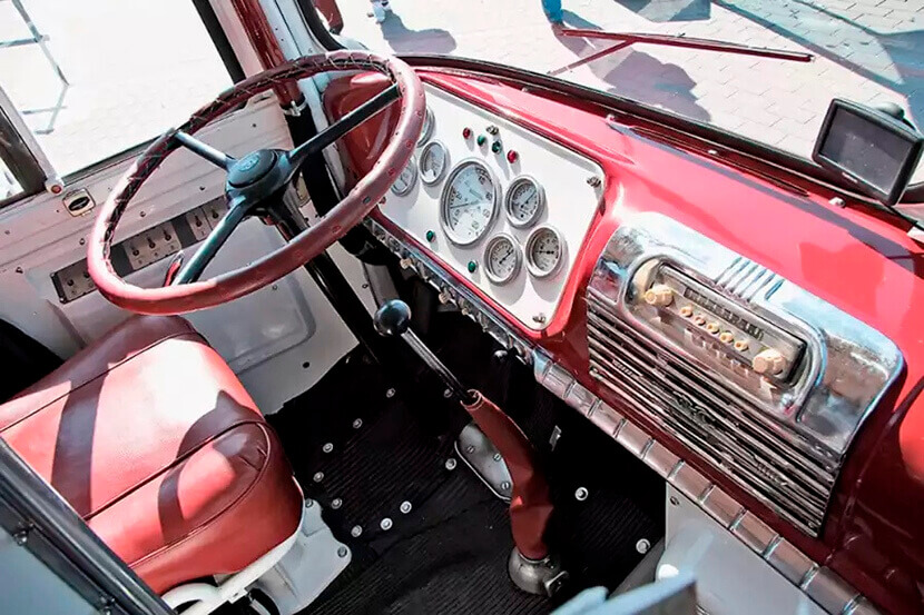 Кроме того, кабина водителя оснащалась индивидуальным вентилятором. Приборная панель включала в себя такие приборы, как указатель температуры воды, амперметр, указатель давления масла и два манометра, показывающих давление в тормозной системе передних и задних колёс.