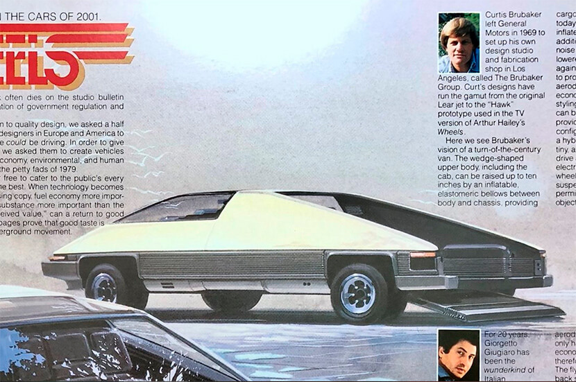 Что касается дизайнерской концепции, то мы ~~ни на что не намекаем~~ рекомендуем обратить внимание на проект «Автомобили 2001 года», скетчи для которого представители американской и европейской школ публиковали… в эротическом журнале Penthouse в 1978-1979 годах! К примеру, бывший дизайнер General Motors Кёртис Брюбейкер выдал нечто очень похожее на то, что спустя полвека стало электрическим пикапом. По замыслу Брюбейкера машина будущего должна была сочетать в себе черты всех уже известных форм-факторов (пикап, минивэн, хэтчбек и внедорожник), иметь трансформируемый кузов и изменяемый клиренс.