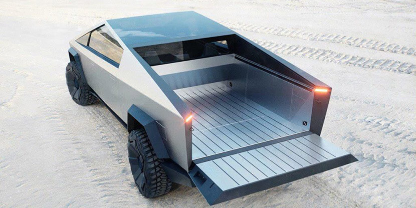 И вообще новинка Tesla меньше всего похожа на пикап. Повторяя концепт Брюбейкера, эта модель имеет классическую минивэновскую морду – с коротким капотом, вынесенным далеко вперёд лобовым стеклом и треугольными окошками перед дверями. Кузов и вовсе своей формой напоминает трапецию с преобладающими плоскими и выгнутыми поверхностями.