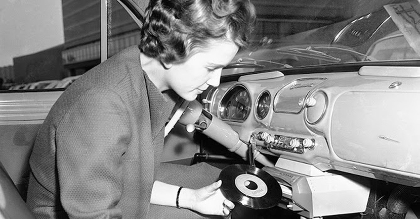 В 1950-х развлечь водителя в дороге мог только штатный радиоприемник. Это значит, что поставить любимую музыку у автомобилиста возможности не было, приходилось адаптироваться под вкусы конкретной радиостанции, то и дело меняя волну, либо попросту ехать в тишине, слушая рокот мотора. В 1956 году компания Chrysler предложила клиентам элегантный выход из данной ситуации, начав устанавливать на свои авто проигрыватель Highway Hi-Fi, который воспроизводил музыку с виниловых пластинок.