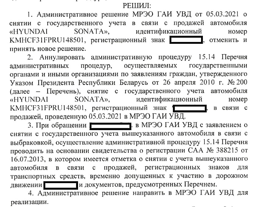 Это пример того, как можно изменить основания для снятия с учета транспортного средства. Правда, в данном случае меняли «снятие с учета для продажи» на «снятие с учета для утилизации» и сдавали при этом документы (свидетельство) и «транзиты», а нам нужно сделать наоборот: ни документов, ни «транзитов» у нас нет, так как при снятии с учета для утилизации таковые не выдаются. Тем не менее уже хорошо, что подобные примеры есть и что закон позволяет изменять основание для снятия с учета. Как будет в конкретном случае, загадывать не станем – практика показывает, что решения принимаются разные. Если будет принято положительное решение, то после его получения необходимо оформить договор купли-продажи и зарегистрировать его в ГАИ.