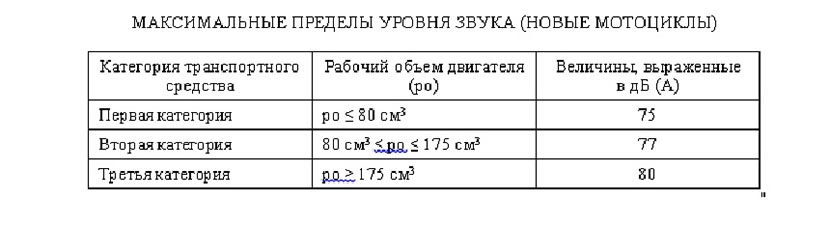 В данном документе сказано, что система выпуска или глушитель должны в своем составе иметь полный комплект элементов, необходимых для снижения шума, производимого двигателем мотоцикла и его выхлопной системой.