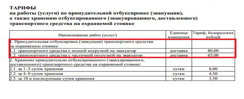 Обратите внимание, что тариф применяется при принудительной отбуксировке (эвакуации) транспортного средства на охраняемую стоянку. То есть автомобиль должен до этой стоянки доехать и быть туда помещен с оформлением всех необходимых документов. Тогда процесс принудительной эвакуации считается завершенным.