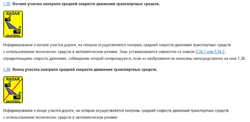 То есть на дороге стоят две камеры в начале и конце участка, на котором контролируется средняя скорость с использованием технических средств в автоматическом режиме. В соответствии с обновленными ПДД начало и конец данного участка обозначаются так:
