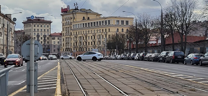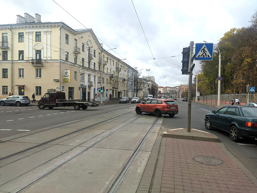 Бывают случаи, когда автомобилист ну очень пытается успеть по своим делам. При этом хорошо бы не забыть, что согласно пункту 81 ПДД РБ, движение по трамвайным путям попутного направления, расположенным слева на одном уровне с проезжей частью дороги, разрешается только для опережения (вне обозначенных и регулируемых перекрестков), объезда препятствия при условии, что все полосы движения в данном направлении заняты, а также для поворота налево или разворота в соответствии с пунктом 64 настоящих Правил. При этом запрещается выезжать на трамвайные пути встречного направления и осуществлять движение по ним, а также движение по трамвайным путям попутного направления при наличии конструктивно выделенной над проезжей частью дороги посадочной площадки, с которой осуществляется посадка (высадка) пассажиров в трамвай.
