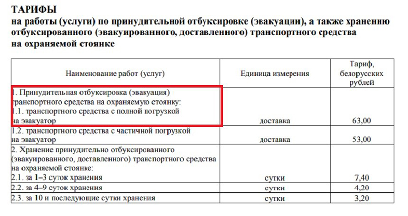 Тариф за эвакуацию авто составляет 63 рубля, но это за эвакуацию на охраняемую стоянку, что подразумевает под собой доставку автомобиля на эту стоянку, о чем мы говорили выше. Отдельного тарифа за «снять-поставить» автомобиль на место нет, что и порождает за собой обоснованное возмущение автовладельцев, которым выставили полный счет, притом что автомобиль фактически никуда не уезжал, а значит, считать это принудительной эвакуацией в том значении, как это прописано в законе (инструкции), не приходится.