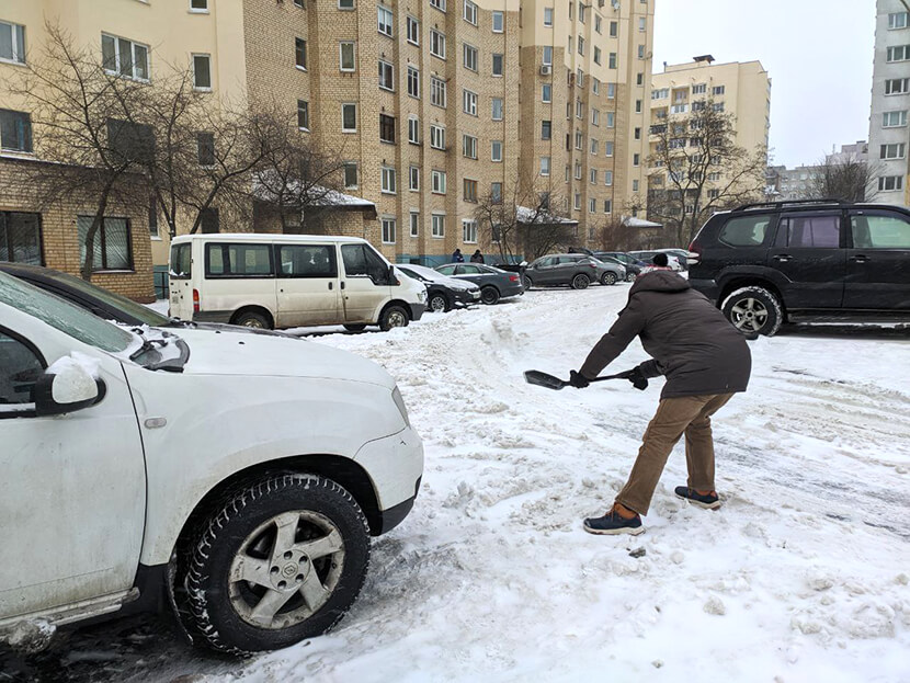 Но нас интересует п. 36-1 Правил № 1087. Данная норма введена постановлением Совмина недавно, 16 мая 2025 года. В ней сказано, что в случае стоянки транспортного средства на придомовых территориях, проездах юридические и физические лица, в том числе индивидуальные предприниматели, обеспечивают своевременную уборку от снега территории, предназначенной для движения и (или) стоянки транспортного средства, на расстоянии не менее 1 метра от данного транспортного средства, принадлежащего им на праве собственности или ином законном основании. Парковка во дворе в соответствии с Правилами дорожного движения – это вполне законное основание пользования территорией. Соскочить (это, мол, территория города) не получится. Да и некрасиво это по отношению к соседям.