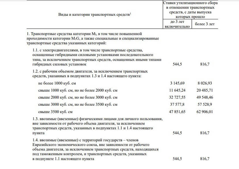 Размер всех приведенных тарифов для физических лиц будет сохранен. Но в соответствии с новым документом перечень видов и категорий транспорта пересмотрен. Теперь утилизационный сбор будет распространяться всего на два типа транспортных средств: возрастом «до 3 лет» и «более 3 лет» с даты выпуска. Ранее последняя категория определяла машины «от 3 до 7 лет» и «более 7 лет».